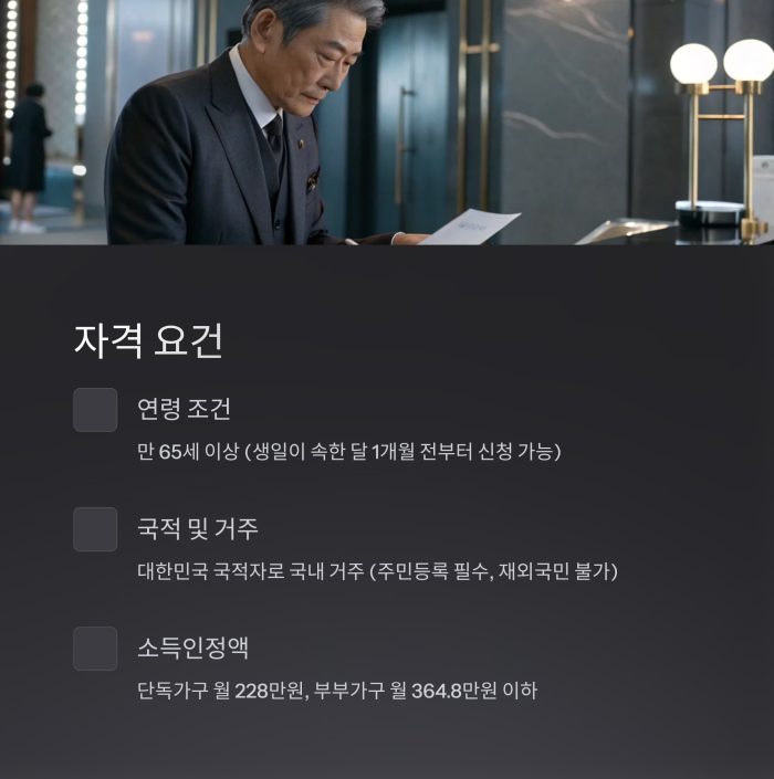 만 65세 이상, 국내 거주자만 가능…기초 요건 체크