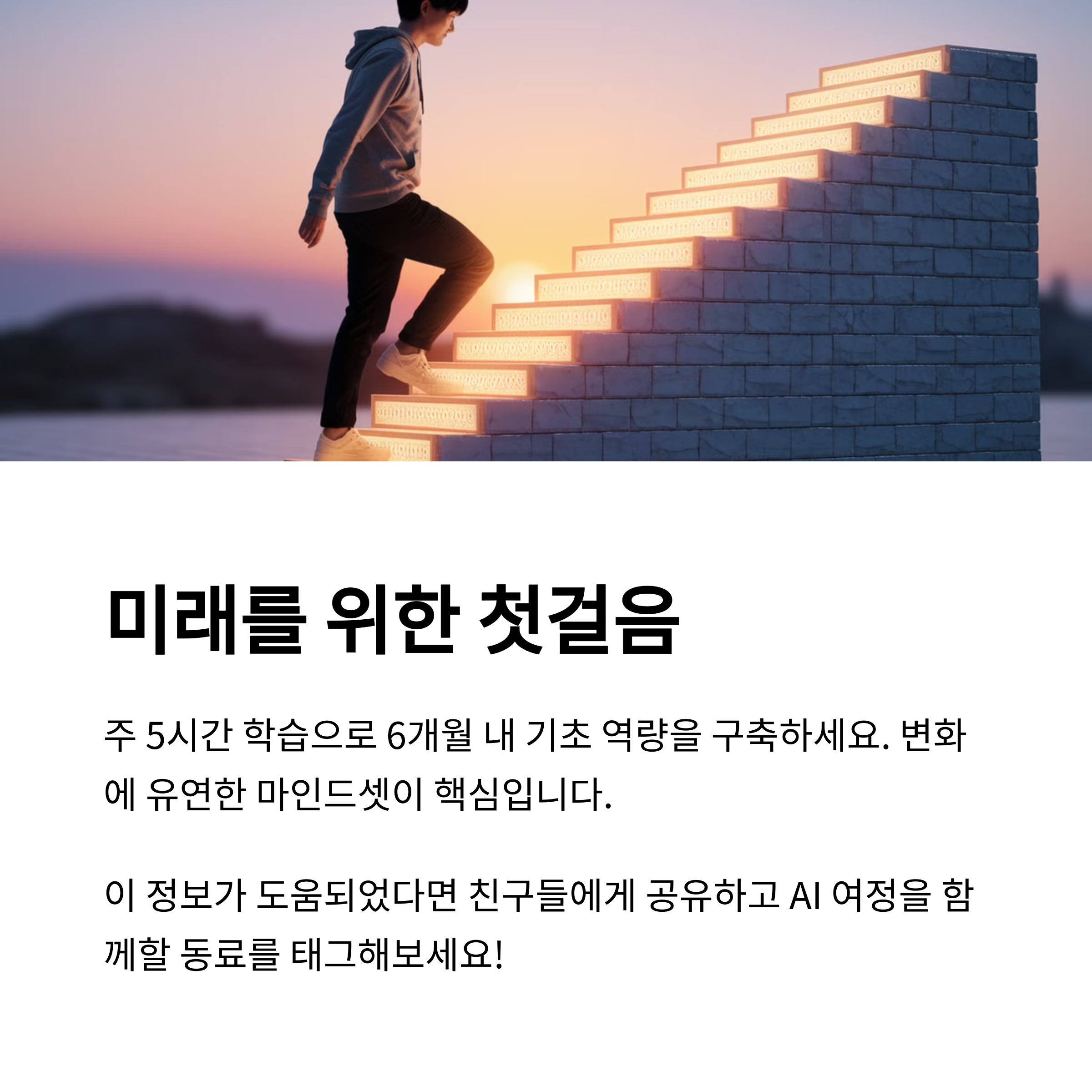 AI 시대의 커리어는 더 이상 특정 전문가만의 전유물이 아닙니다. 누구나 접근 가능하며, 변화에 유연하게 대처하고자 하는 마음가짐이 가장 큰 자산입니다. 지금 시작하지 않으면 언젠가 더 큰 불안이 될 수 있지만, 지금 작은 시도는 미래의 기회를 여는 열쇠가 됩니다. 지식보다 중요한 건 태도이며, 실천보다 빠른 길은 없습니다. 이 글이 여러분의 커리어 방향 설정에 작은 이정표가 되길 바랍니다.